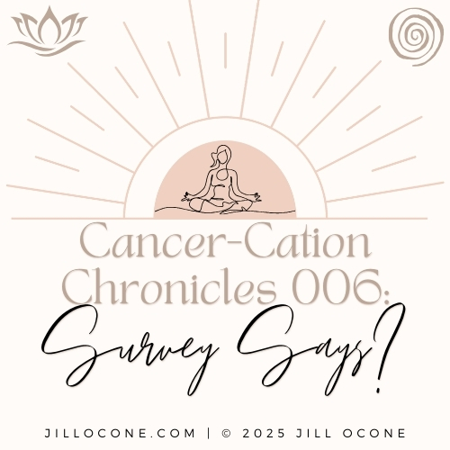 “Cancer-Cation Chronicles 006: Survey Says?” was posted on jillocone.com on April 6, 2025. Artificial Intelligence (AI) was not used at all in creating or writing this post. Views and opinions expressed in this post are solely those of the writer, who was not endorsed or compensated in any manner by any entity; views do not represent any of Jill Ocone’s employers. Copyright 2025, Jill Ocone. All rights reserved. Contact Jill for reposting, licensing, and publishing inquiries using any of the links below.